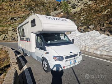 Vendo camper modello Ford transit, allestimento rimmor ,anno 2006,km 127mila,trazione posteriore gemellato,gomme 90%,accessori climatizzatore in cellula più aria condizionata in cabina,6 marce, garage molto grande per 3 moto da trial,bagno doccia ampi,trasformatore per corrente 24 vl,6 posti letto 1 matrimoniale in mansarda 1 matrimoniale in coda e trasformazione da tavolo a letto per 2 posti,6 posti in viaggio,tenda da sole, fari anteriori nuovissimi, Vendo causa inutilizzo 26000 euro !Stufa a gas modello trumatic appena rivisionata! Camper sempre tenuto al coperto!