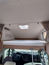 Vendo camper mansardato 6 posti letto e in marcia , motore ducato euro 6 con 6 marce cambio manuale 2300cc 140 cavalli con 33000 km appena tagliandato , camper molto comodo grazie a due letti matrimoniali sempre fatti , grande garage ,porta larga con scalini elettrici , parabola , tendalino, scambiatore bombole automatico pronto per partire lascio cavo 220v , catene e seconda cassetta WC