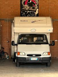 La motorizzazione è su meccanica Ford Transit 2.5 TD, 100 cv, con ruote posteriori gemellate. I pneumatici all season sono nuovissimi. Equipaggiato con tendalino esterno, portabici e un baule sul tetto