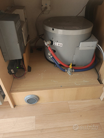 Vendo camper mansardato elnagh su fiat ducato 2.8 JTD 140 CV 5 posti viaggio 6 posti letto bagno con lavello a sx e box doccia molto comodo dalla parte dx ; frigo trivalente grosso 150lt , 2 batterie servizi con centralina e display NDS per carica automatica e visualizzazione carica batterie cucina a 4 fuochi con forno a gas e grill super funzionale per cucinare e scongelare letti a castello in coda e possibilità di sollevare il letto sotto per ricavare un garage spazioso anche per una moto , portabici , TV in mansarda che gira verso la dinette , riscaldatore webasto a gasolio e boiler truma 15 LT per acqua calda , retrocamera oblò centrale panoramico ventola di circolazione arie e aspirazione e cappa aspirante con luce sulla cucina vano per due bombole gas 10 litri l'una prese USB per carica servizi possibilità di prova previo appunto anche con un vostro meccanico di fiducia e altre foto su richiesta. Vendo solo per passaggio ad altra tipologia di camper...pronto per partire