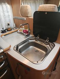 Vendo camper mansardato, elnagh, su fiat ducato 2.8 JTD 140 CV 5 posti viaggio 6 posti letto bagno con lavello a sx e box doccia molto comodo dalla parte dx ; frigo trivalente grosso 150lt , 2 batterie servizi con centralina e display NDS per carica automatica e visualizzazione carica batterie cucina a 4 fuochi con forno a gas e grill super funzionale per cucinare e scongelare letti a castello in coda e possibilità di sollevare il letto sotto per ricavare un garage spazioso anche per una moto , portabici , TV in mansarda che gira verso la dinette , riscaldatore webasto a gasolio( fatto pulizia generale riscaldatore e sostituito bruciatore e candeletta accensione e pulito bocchette di areazione il tutto certificato da scontrino officina autorizzata di zona ) boiler truma 10 LT per acqua calda , retrocamera, oblò centrale panoramico ventola di circolazione aria e aspirazione cappa aspirante con luce sulla cucina, vano per due bombole gas 10 litri l'una prese USB sia in mansarda che nei letti posteriori e vicino al tavolo dinette possibilità di prova previo appunto anche con un vostro meccanico di fiducia e altre foto su richiesta. Vendo solo per passaggio ad altra tipologia di camper...pronto per partire
