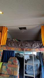 Camper mansardato Fiat Ducato Sea 2004, 4 gomme nuove, 6 posti letto, 6 posti in marcia (con cinture), 2 serbatoi acque chiare, 1 acque nere, 1 cassetta estraibile bagno, bagno con doccia separata, zanzariere e oscuranti su tutte le finestre, tv + antenna tv, frigo trivalente, stufa e boiler a gas (serbatoio gpl per servizi), turbovent, Viesa (aria condizionata cellula abitativa 12v), pannello fotovoltaico 150W, inverter 2000W, batteria servizi e batteria motore nuove, prese usb ad ogni letto, garage sotto letto a castello, sedili girevoli, portabici 3 bici, tendalino fiamma con led sotto, portapacchi, telo copricamper, parasoli per abitacolo.