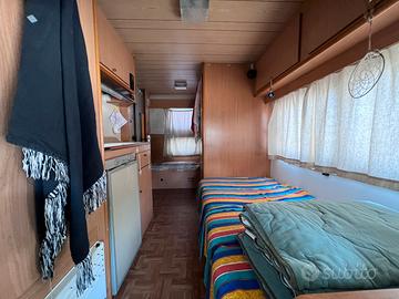 Realizza il tuo sogno di avventure on the road con questo fantastico camper mansardato, perfetto per 6 persone in viaggio e 4 posti letto più un comodo divanetto. Acquistato con passione da un amico, questo camper ha una storia affascinante e ha già portato a scoprire luoghi meravigliosi e a rincontrare amici. **Caratteristiche principali:** - Anno: 1987 - Chilometraggio: 95.000 km - Pompa cavo sostituita con una pompa Bosch meccanica - Batteria nuova (01/2024) - Marmitta completamente sostituita (03/02/2025) **Ulteriori dettagli:** - Ruote gemellate per una maggiore stabilità - Bagno modificato con box doccia ampio - Serbatoio d'acqua - Cucinino a scomparsa, mai utilizzato (ottimo per chi segue una dieta vegana) - Sensori di parcheggio per facilitare le manovre - Filtro olio, filtro carburante e filtro motore sostituiti (agosto 2023) - Guarnizione del coperchio dell'olio sostituita (luglio 2023) Questo camper è stato il mio compagno di viaggio per esperienze indimenticabili e ora desidero che qualcun altro possa vivere la stessa magia. Non perdere l'occasione di volare verso nuove avventure con questo tesoro su ruote! Riparabili o sostituibili: Un tappo serbatoio, un serbatoio, serratura passegero.