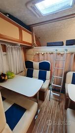 Vendesi camper GiottiLine mansardato (mt.7,28) modello Devil I130, 2.3 mtj 130CV del 2009 con 50266 km, 7 posti letto (matrimoniale in mansarda, 2 letti a castello trasversali posteriori, un matrimoniale e uno per bambini in dinette centrale) omologato 6 posti in viaggio, unico proprietario, con gancio traino, sospensioni ad aria, cruise control, sensori di parcheggio, tendalino Fiamma da 4 metri, climatizzatore in cellula e cabina, pannello solare da 100W con regolatore MPPT 20A, inverter 3500W, parallelatore CBE, batterie (motore e servizi sostituite 2 anni fa), portabici fiamma a 4 posti, tappezzeria in pelle rifatta l'anno scorso compreso pannellatura e profili letto, valvola di scarico acque grigie elettrica con videocamera, autoradio doppio din con navigatore, impianto elettrico 220V aggiuntivo con prese bticino, luci interne a led, prese usb per ricarica con voltmetro, serbatoio acque chiare aggiuntivo, cinghia distribuzione e pompa acqua già sostituita una volta (nonostante i pochi km), sigillature appena fatte. Fermo da 2 anni ma perfettamente funzionante, cambio olio e filtro fatto a dicembre 2024, filtro aria, gasolio e antipolline già acquistati (verranno sostituiti prima della vendita), revisione effettuata il 18/12/2024, vendo per inutilizzo. Non compresi nel prezzo ma se interessati, ho molti accessori tipo tavolo, sedie, tappeto patio, cucinotto esterno, mobiletto brunner, catene da neve, oscuranti termici esterni, doppia cassetta wc mai usata, pattumiera da esterno ed altro. Dopo averlo visionato fornisco una cronostoria del mezzo con pregi e difetti, se concordato l'acquisto, soltanto dopo il pagamento (esclusivamente con bonifico bancario) e dopo trapasso verrà consegnato il veicolo al nuovo intestatario del mezzo. Non si accettano proposte senza prima aver visto il camper, e non viene spedito per nessun motivo.