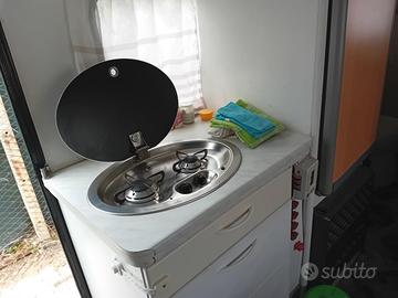 Camper mansardato WC con doccia separata, cucina due fuochi , motore Ford Transit 2500, ideale per prima esperienza, Km 128000. Revisionato fino al Marzo 2027. Un letto in mansarda ed uno sul retro. Comodo per 4 persone, frigo funzionante anche a gas, pannelli solari per luci interne.