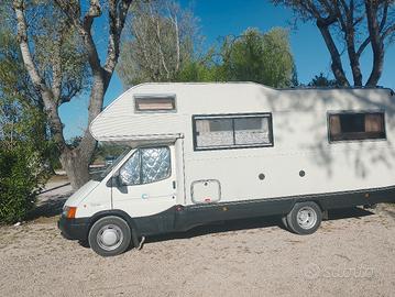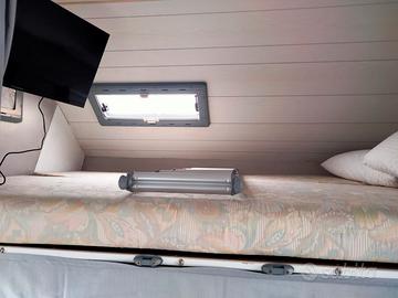 vendo camper mansardato su Ford transit turbo diesel gemellato. mansarda più dinette più letto a castello in coda. perun totale di 6 posti letto motore impeccabile tagliandato e con cinghia fatta. appena rifatta la cellula e i Bandoni. pavimenti rifatti e tappeto isolante removibile su misura per inverno bagno con doccia separata, divisorio e oscuranti inclusi. cucina completa, stufa e riscaldatore a gasolio. impianto solare su tetto con parallelatore e 2 batterie servizi da 100Ah l una da garantire una buona permanenza in libera, portabici da 3 posti. è datato ma super funzionante ideale per mille utilizzi.