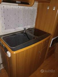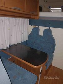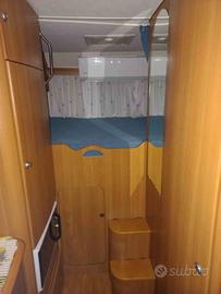 4 posti viaggio, 7 posti letto, 2 matrimoniali fissi di cui uno in mansarda ed uno in coda sopra al gavone, l'altro nella dinette.