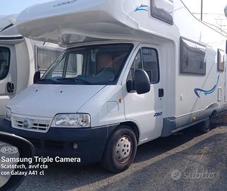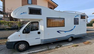 Vendo Camper Mansardato Jioint 361 2800 cc , 130000 km , distribuzione fatta a 109000 km Completo di portabici , inverter con doppio pannello solare , tendalino fiamma , telecamera posteriore , gomme in ottimo stato , tutti gli oblò nuovi con guarnizioni nuove più uno aggiunto nel tetto in bagno , riverniciato da poco In mio possesso dal 2016 , vendo per scarso utilizzo