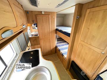 Accessori: Veranda, Portabici, Scaletta esterna, Portapacchi, Doppio Serbatoio Acqua, Antenna Tv Dgt, Pannello Solare, Clima Cellula Dometic, Retrocamera Con Monitor, Sospensioni Ad Aria, Autoradio, Zanzariera porta D'Ingresso, Oblò Turbo Vent, Trio Gas, Bagno Con Doccia Separata