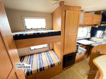 Mansardato 7 Posti Letto Con Doppia Dinette Una Grande Con Sedute Contrapposte ed Una Piccola Entrambe Trasformabili in Letti Una Bella Cucina Ad Angolo ed Un Ampio Matrimoniale In Mansarda e Letti A Castello In Coda con Gavone a Volume Variabile e Bagno Con Doccia Separata