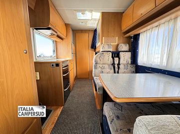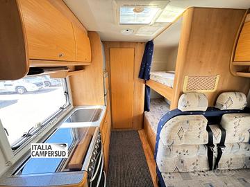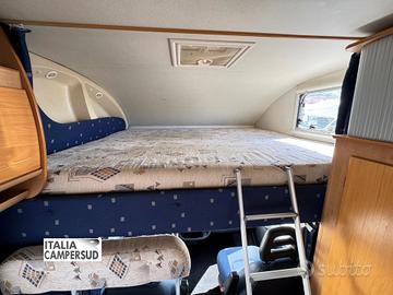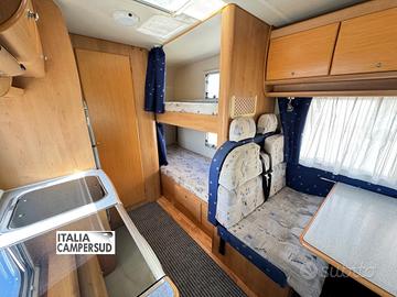 Mansardato 6 Posti Letto Con Dinette Grande Sovrapposte E Tavolo Centrale Trasformbile in Letto Matrimoniale ed un Letto Molto Ampio In Mansarda e Letti A Castello In Coda Trasversali con Gavone a Volume Variabile e Bagno Con Doccia Separata