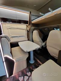 Raffrescatore viesa ,forno a gas, presa gas esterna, doccino esterno ( acqua calda e fredda) doppio serbatoio acque( 220 lt d acqua in totale), porta biciclette 3 posti, tende privacy cruscotto . Doppia televisione su dinette e letto posteriore, frigorifero da 140lt, telecamera posteriore e navigatore android, antenna satellitare( si può vedere anche in viaggio)