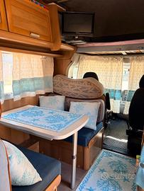 Miller Illinois , 2007. lunghezza 6,49m Km 77000 Omologato x 6 posti viaggio e 6 posti letto Porta bici Doppia batteria servizi 2 pannelli solari Tv Frigo grande con freezer separato Letti a castello dietro Bagno con doccia separata da box 4 gomme nuove appena messe. Revisione effettuata a Marzo 2026. Prezzo trattabile al momento della visione del mezzo. Contattare Salvatore 3480315748