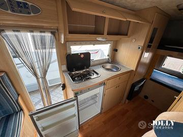 Le sospensioni ad aria migliorano comfort e stabilità di guida, mentre dotazioni come pannello solare, climatizzatore cellula, Turbovent e retrocamera lo rendono adatto anche alla sosta libera e ai viaggi più lunghi. I letti a castello posteriori e il bagno con box doccia separato aumentano la praticità nell'uso quotidiano.