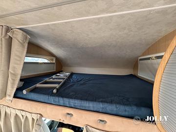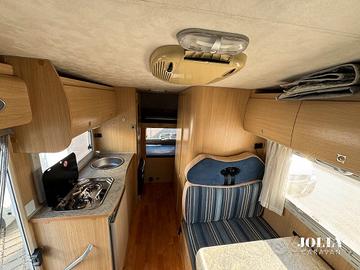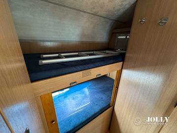 Le sospensioni ad aria migliorano comfort e stabilità di guida, mentre dotazioni come pannello solare, climatizzatore cellula, Turbovent e retrocamera lo rendono adatto anche alla sosta libera e ai viaggi più lunghi. I letti a castello posteriori e il bagno con box doccia separato aumentano la praticità nell'uso quotidiano.