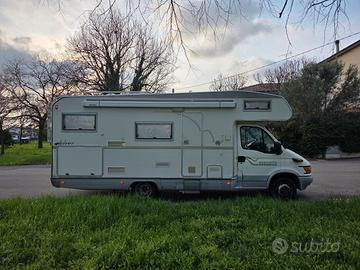 Camper Mobilvetta in perfette condizioni, eseguiti recentemente lavori di manutenzione: -Sostituita batteria d'avviamento; -Aggiunta foglia balestra posteriore; -Sostituita balestra anteriore con una rinforzata; -Sostituito spioncino gas del frigo; -Sostituiti oblò del soffitto; -Sostituita antenna TV digitale terrestre; -Sostituita cinghia distribuzione; -Aggiunto serbatoio d'acqua (per un totale di 300l); Altri optional aggiunti: -Telecamera per retromarcia (durante i viaggia fa anche da navigatore Android Auto/Apple car play); -Pannello fotovoltaico per carica batterie; -Rifornimento gas con bombola dal distributore. Sono disponibile a mandare ulteriori foto del veicolo, se interessati. Camper pronto a partire, nessun lavoro da fare. Km: 120.000 (circa) Meccanica Iveco 35.10 con ruote gemellate Lunghezza: 7,15m Altezza: 2,90m 3 letti matrimoniali.