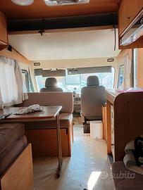 Camper usato, in discrete condizioni. Fiat Ducato 2500 aspirato,5 posti letto. Riscaldamento funzionante, revisionato. Munito di 3 oblò nuovi, nel soffitto. Bagno funzionante, manca frigorifero e scalda acqua. Non ci sono infiltrazioni d'acqua. I sedili cabina sono nuovi, gomme 4 stagioni al 50%, presenti catene da neve. L'equipaggiamento (pentolame e lenzuoli) presente all'interno sono in dotazione. Visionabile a Imola