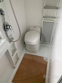 - Impianti: Elettrico nuovo con luci a LED; idraulico con serbatoio acque bianche (70L), grigie (50L) e cassetta WC estraibile.