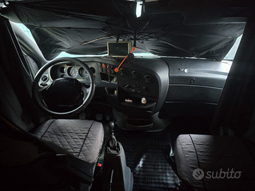 Camper mansardato 6 posti meccanica Iveco gemellato 2800 turbo diesel 150 CV 6 marce ,75000km originali, distribuzione fatta, gommato bene 4 stagioni, clima in cabina, chiusura centralizzata con antifurto, 6 posti letto con 2 letti matrimoniali con materassi nuovi, forno, tenda da sole esterna, garage, frigo grande, stufa nuova, scaletta elettrica,divanetti tessuti impermeabili rifatti,portabici, esente da infiltrazioni. Controllo annuale infiltrazioni acqua. Siliconatura esterna appena fatta.