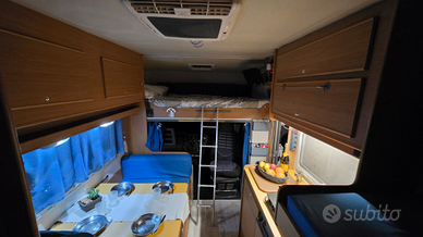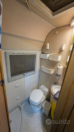Diversi optional a bordo scalino elettrico, frigo trivalente, stufa a gas truma, boiler acqua calda truma, pannello solare, batteria a litio servizi, gavone dobbia bombola del gas, aria condizionata dometic, tv, impianto stereo in tutto il veicolo, doppia cerchi con gomme estive e invernali, oscuranti interni ed esterni, tendalino fiamma, retrocamera, portabicilette, piatto doccia separato, sedile girevole. Il veicolo é composto dai due lettini singoli in coda con bagno e armadio guardaroba, tavolo per 4/5 persone che si trasforma in letto, mansarda con due posti abbondanti per dormire. Come si vede dalle foto veicolo rimessato al coperto.