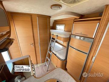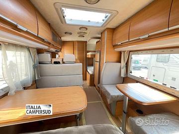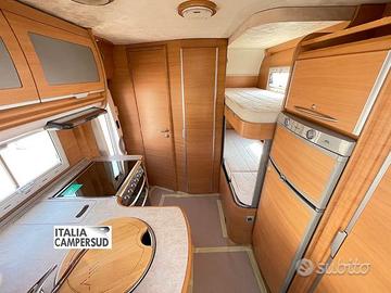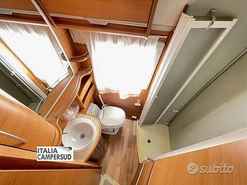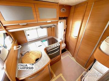 Accessori: Veranda, Portabici, Luce Esterna, Attacco Esterno Acqua, Doppio Pavimento Passante, Antenna Tv Dgt, Oblò Panoramico, Doppio Serbatoio Acqua, Retrocamera Con Autoradio 7", Sensori Park, Clima Cabina, ASR, Sospensioni Ad Aria, Frigo Grande Da 150 Lt, Cucina Attrezzata 4 Fuochi, Forno, Cappa Aspirante, 2 Oblò Turbo Vent, Riscaldamento Webasto, Bagno Con Doccia Separata