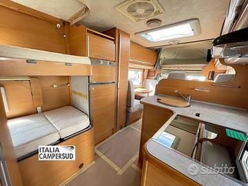 Mansardato 7 Posti Letto Con Doppia Dinette Una Grande Con Sedute Contrapposte ed Una Piccola Laterale, Entrambe Trasformabili in Letti Un Ampio Matrimoniale In Mansarda e Letti A Castello In Coda con Gavone a Volume Variabile, Una Cucina Ad Angolo Attrezzata ed In Coda Bagno Con Doccia Separata Doppio Pavimento Passante
