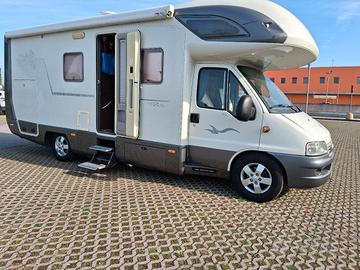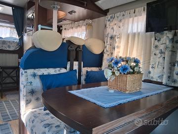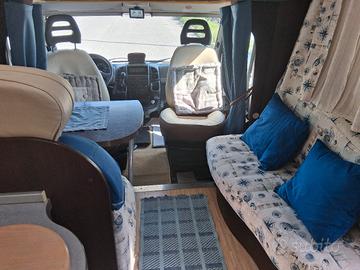 Mansardato Mobilvetta NAZCA su fiat Ducato 2,8 JTD del 2005 con soli 69mila km. 4 posti, lungo m.7,13x2,3. Due letti matr.,antifurto perimetrale, bagno con doccia sep., cassettawc +1 di ris., wc nauitico, cerchi in lega+ruota di scorta con crik., clima in cabina ed in cellula, gruppo elettrogeno Honda 3kw, pannello fotovoltaico con inverter, bombolone gpl lt.30 con strumento di controllo livello, forno a gas, frigo 150lt. con cong. separato alimemtato 12v. gas. 220., 2 tv con decoder dig., nav sat., sedili ant. gir., tutte le aperture protette da oscuranti e zanzar. oscuranti parabrezza e portiere,,scalino elettr., sensori di parcheggio, doccino esterno, tendalino fiamma, 2cisterne acqua, autoradio fm/dab comleta di tutto,