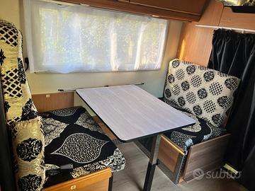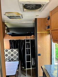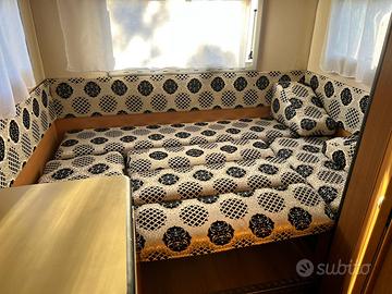 Il camper ha doppia dinette di cui una a ferro di cavallo in coda che si trasforma in un vero letto matrimoniale, bagno con doccia separata.