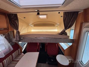 Doppio pavimentoAnno Immatricolazione 11/2013Posti letto 4Posti omologati 4ACCESSORI- Clima Cabina- Cruise Control- Oscuranti cabina Plissettati- Radio- Frigo 145lt + Forno a gas- Luce esterna- Pannello solare- Maxi garage posteriore- Letto garage a volume variabile elettrico- Maxi oblò panoramico- Porta tv a scomparsaDIMENSIONI