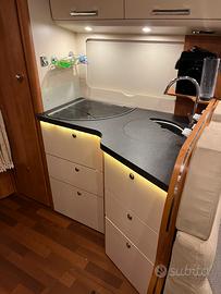 Vendo Carthago C-Tourer Sport I 148. Telaio Fiat Heavy 4,2t Riduzione portata a 3,5t Patente B 4 posti viaggio 4 posti letto Letti posteriori gemelli trasformabili in matrimoniale. Tendalino, Moquette cellula e cabina, Rivestimento garage, Turbovent, Piedini stazionamento, Inverter 1500 W, Pannello solare, Copertura invernale vetro e Copri motore. Veicolo sempre in rimessaggio. Gomme estive 80% Gomme invernali 60% Ulteriori foto disponibili su richiesta.