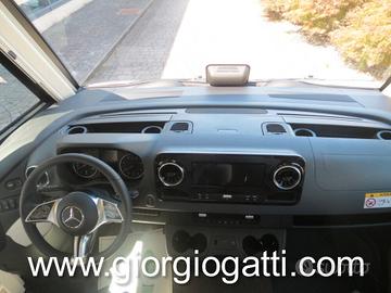 -Dotazioni accessorie presenti sul veicolo: Pacchetto Base plus : (MBUX 10,2" Multimedia con navigatore / DAB+- Presa USB nel pensile sopra il letto posteriore-Assistente alla segnaletica stradale-Predisposizione radio con antenna sul tetto e DAB+, altoparlanti (4 x),Ricezione DVB-T2-Sensore pioggia (Mercedes)-Assale anteriore con portata superiore-porta cellula con zanzariera a rullo-Freno di stazionamento elettrico-Oblò Midi-Heki con spot LED sopra il gruppo sedute a L-Booster di ricarica-Ampia porta del garage per scooter lato guida-Strumento combinato con display a colori-Volante in pelle con optional tasti multifunzione (con pomello del cambio in
