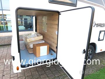 -Comprensivo delle dotazioni di serie: Serbatoio gasolio 60L, predisposizione radio con antenna DAB, Pneumatici 4 stagioni, comandi radio al volante, Traction +, Fari full led, DRL led, ABS/ESP,Airbag conducente e passeggero, cruise control, specchietti regolabili elettricamente con sbrinatore,clima motore, fix&go, 5° posto omologato, kit trasformazione dinette,Presa 220v in garage, porta ingresso XL, zanzariera porta ingresso, frigorifero a compressore 158lt, Porta spezie, Riscaldamento Truma Combi 4D, serbatoio grigie coibentato+valvola di scarico con resistenza al gelo, isofix,Predisposizione per doppia batteria al litio, braccio TV 32", trasformazione letti gemelli in matrimoniale, Porta di separazione giorno/notte, Fari Posteriori Full Led