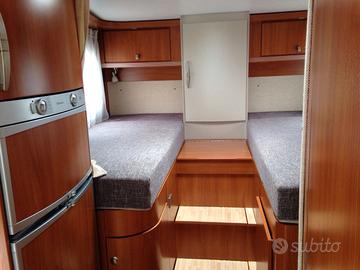 CAMPER MOTORHOME HYMER-ERIBA JET 673 USATO Anno 2009 cc. 2300 mjt km. 41.000 ABS-ASR, Patente B, Lunghezza 7.29 mt, Larghezza 235, Altezza 2.90, 4 posti letto 4 posti viaggio, Revisionato nel 2025, Antenna satellitare TELECO più antenna digitale, Televisore Teleco, Pannello solare da 100w, Batteria servizi nuova, Soffietti posteriori ad aria, Autoradio con diffusori anche nella cellula sopra la dinette, Telaio Fiat Ducato Maxi 35/40, Garage posteriore grande con piano mandorlato, Telecamera posteriore, Clima in cabina, Cruise control, Batteria avviamento motore nuova, Oscuranti plissettati e zanzariere su tutte le finestre e porte, 02 Oblò panoramici, Interni in tessuto grigio perfetto, No fumatori, No animali, Piano di cottura a 3 fuochi più cappa aspirante, Doccia e bagno separati, Letti gemelli in coda + Letto matrimoniali (basculante e trasversale), Tavolo in dinette molto ampio e regolabile, Cerchi in lega in alluminio, Pneumatici michelin buoni, Impianto di riscaldamento Truma Combi 6 a Gas, Tagliandato motore appena fatto, Mezzo in ordine perfetto tenuto con molta cura e sempre in luogo coperto e asciutto, Pronto all'uso, Porta moto omologato portata max 150 kg della Goldschmitt, Serbatoio acqua chiara da 110 Litri, Documentazione/fatture lavori di manutenzione eseguiti negli anni tutti presenti.