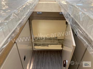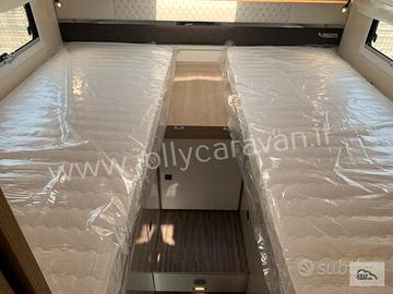 La zona notte con letti gemelli e letto basculante crea un ambiente comodo e versatile, mentre la qualità Mobilvetta garantisce isolamento, solidità e un'estetica ricercata.