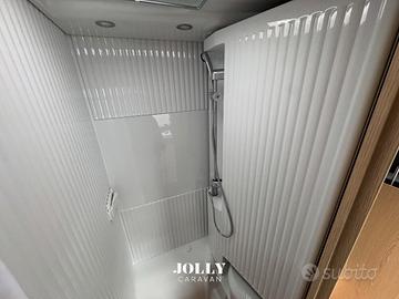 Dotato di fari fendinebbia, cerchi in lega bicolor, porta con zanzariera, oblò panoramico e predisposizione TV, è pronto per essere personalizzato e utilizzato tutto l'anno.