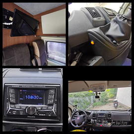 Autoradio con retrocamera e bloetooth per connnetere altri device, presa USB e switch per staccare autoradio dalla batteria motore, per ascoltare radio anche in sosta a motore spento.