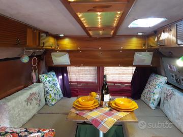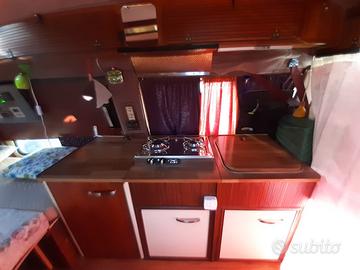 Piano cottura due fuochi, lavabo da bagno in alluminio smaltato, 4 finestre apribili a compasso, tre scorrevoli con zanzariera, vetri oscurati e due oblo' Vetus nautici antigrandine, serbatoio acqua dolce da 79 lt. 44 lt. per acque grigie, wc a separazione tipo Trelino o Boxio, ma ci può stare anche un classico wc chimico.