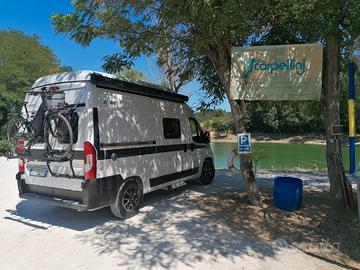 Vendo furgone su base Fiat ducato multi jet 3 140 cavalli, del 2022,4 persone in marcia e 4 posti letto. 30000 km. Lunghezza 540 cm,h 275,larghezza 205 Tettuccio sollevabile con chiusura elettrica Allarme volumetrico e perimetrale,blocco shuft. Radio alpine compatibile Apple e Android Portici Thule Oscuranti plissettati reimo Tavolo dinette ribaltabile Tendalino laterale Duel letti matrimoniali, in coda e pop top Frigorifero a compressore con doppia apertura. Cerchi in lega e inserti grafica Carbon Tasche porta tutto in ferro all interno dei portelloni retro Trauma gas con due bombole e dual control+ blocco crash Anche Cassettiera da posizionare nella zona di carico Piastre e barre da fissare sul tetto Copertura invernale per parabrezza anteriore Contenitore box da fissare sul portabici Kit letto baby dinette Tubo per portare il riscaldamento al letto superiore I materassi ,sedili, pavimento sono sempre stati ricoperti,