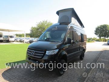 -Dotazioni accessorie presenti sul veicolo: Maggiorazione per meccanica 419 CDI 190cv-Trazione integrale-Cerchi 16" con pneumatici All Terrain-Colore esterno Nero Obsidian-Parabrezza riscaldabile-Protezione sotto motore-Tetto a soffietto in tinta-Isofix-Supporto termico per tetto a soffietto-Predisposizione TV-Sistema assistenza fari abbaglianti-Blind Spot Assist-Pacchetto Style: (paraurti e griglia di raffreddamento nello stesso colore del veicolo- griglia di raffreddamento cromata - fari fendinebbia con luci statiche di svolta)-Equipment Line plus: (sospensioni asse anteriore rinforzate-vetro termoisolante - pacchetto acustico Mercedes Benz-freno di stazionamento elettrico-clima semiautomatico - quadro strumenti con display a colori MB-volante multifunzione-cruise control-assistenza al mantenimento della corsia-sistema rilevamento stanchezza-sensori pioggia-radio DAB-sistema multimediale MBUX 10,25" con retrocamera, controllo vocale, touchscreen - cambio automatico 9G-TRONIC incl. Funzione Hold- volante in pelle-regolatore della distanza DISTRONIC PLUS-rilevamento segnali stradali-navigatore e integrazione smartphone per il sistema MBUX)-Tappezzeria Indiana-Interni Ivy Green