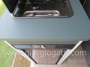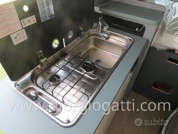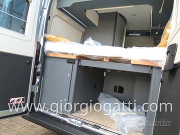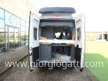 Pack Comfort Kosmo Camper Van (zanzariera portellone laterale, predisposizione per retrocamera, serbatoio recupero isolato e riscaldato, luce led e gocciolatoio per portellone laterale, pedana doccia, pareti camera da letto posteriore rivestite in Ecopelle, mensola abbattibile in cucina)-Vernice metallizzata Artense Grey-Finestre con cornice-Scalino elettrico porta cellula-oscuranti plissettati cabina-Tetto pop up nero- Cerchi in lega 16'' nero (di serie)