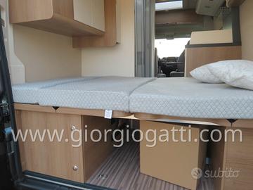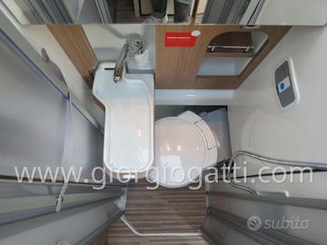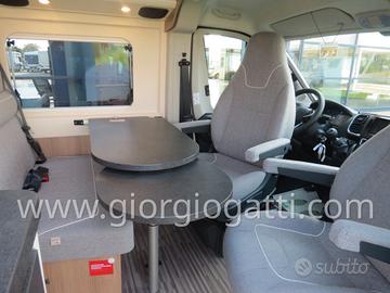 -Comprensivo delle dotazioni opzionali: Pack telaio (Zanzariera dietro la porta scorrevole-Sedili pilota rivestiti stesso tessuto del salone incl. braccioli imbottiti-Serbatoio carburante da 90 litri-sensori posteriori-Volante Multifunzione-Booster di ricarica-Oscuranti Remis plissettati su parabrezza e sui finestrini laterali-Specchietti esterni, regolabili elettricamente e riscaldabili-Sedile passeggero regolabile in altezza-Specchietti esterni ripiegabili elettricamente-Predisposizione radio con antenna sul tetto e DAB+, altoparlanti (4x)-Cornice del faro in nero)-Pack cellula (Pannello comandi digitale Truma CP Plus-Rivestimento tetto con strato di microfibra coibentante-Serbatoio inserito in un contenitore e isolato-Rifinitura cucina-Sistema bloccaggio carichi nel portabagagli-Materassi di qualità in schiuma fredda nel letto posteriore)-Cerchi in lega 16"-Volante e pomello cambio in pelle tessile-Abbellimento del cruscotto con griglie di ventilazione cromate-Climatizzatore automatico cabina-Strumento combinato con display a colori-Stazione di ricarica induttiva per smartphone nella cabina guida-Colore esterno grigio acciaio metallizzato-Illuminazione esterna a LED, compresa la grondaia-Pacchetto prese (3 prese USB / 2 prese da 230 V)-Truma Combi 6 D+E incl. kit altitudine(funzionamento diesel/elettrico)-Radio / Moniceiver Pioneer 6,8" con DAB+