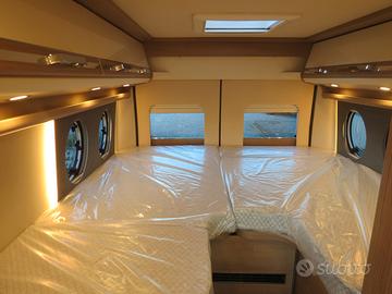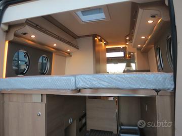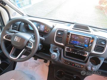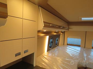 Pack cellula : (Rivestimento interno in microfibra-Upgrade cucina-Materassi a schiuma fredda-CP Plus-Serbatoio grigie isolato - applique da soffitto zona giorno con illuminazione indiretta-sistema bloccaggio carichi portabagagli)-Pack telaio Plus Fiat (volante e pomello del cambio in pelle - clima automatico in cabina - volante multifunzione - freno di staz. elettrico - cerchi in lega da 16"- abbellimento cruscotto-paraurti in tinta-keyless start caricabatteria elettronico con tasto start/stop-ricarica induttiva per smartphone in cabina guida-fendinebbia con luce di svolta-piastra di protezione nera)-Pack Family for 4 (Tetto a soffietto-Rivestimento del tetto in VTR-Supporto per materasso-Rivestimento in pelle sintetica parte interna tetto-Canalina di scolo acqua)-Colore esterno Artense Grey-Pacchetto Prese-Truma Combi 6 D+E incluso kit altitudine-Radio monitor 6.8" con Dab-Supporto TV-Retrocamera lente singola-Predisposizione per retrocamera-SkyRoof sul tetto pop up-Finestra premium nella zona bagno-Oblò apribili nella zona posteriore-Stile Cherry Style-Interni London combinazione tessuto