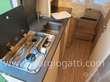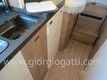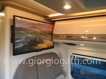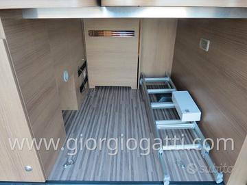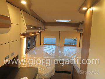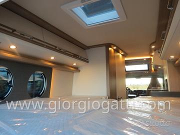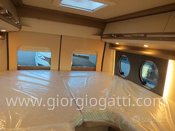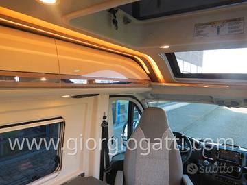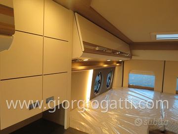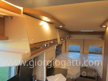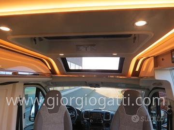 Pack cellula : (Rivestimento interno in microfibra-Upgrade cucina-Materassi a schiuma fredda-CP Plus-Serbatoio grigie isolato - applique da soffitto zona giorno con illuminazione indiretta-sistema bloccaggio carichi portabagagli)-Pack telaio Plus Fiat (volante e pomello del cambio in pelle - clima automatico in cabina - volante multifunzione - freno di staz. elettrico - cerchi in lega da 16"- abbellimento cruscotto-paraurti in tinta-keyless start caricabatteria elettronico con tasto start/stop-ricarica induttiva per smartphone in cabina guida-fendinebbia con luce di svolta-piastra di protezione nera)-Pack Family for 4 (Tetto a soffietto-Rivestimento del tetto in VTR-Supporto per materasso-Rivestimento in pelle sintetica parte interna tetto-Canalina di scolo acqua)-Colore esterno Artense Grey-Pacchetto Prese-Truma Combi 6 D+E incluso kit altitudine-Radio monitor 6.8" con Dab-Supporto TV-Retrocamera lente singola-Predisposizione per retrocamera-SkyRoof sul tetto pop up-Finestra premium nella zona bagno-Oblò apribili nella zona posteriore-Stile Cherry Style-Interni London combinazione tessuto