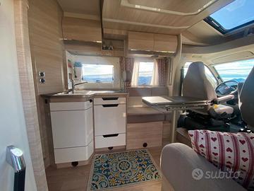 Camper semi integrale con soli 22.000 km. Letti gemelli e letto basculante anteriore, dinette con tavolo centrale e porta separatrice tra zona giorno e zona notte, doccia e bagno separati, luci a LED per diverse ambientazioni e illuminazione, pannello solare ad elevata autonomia, ampio gavone, portabici, tendalino Thule. Vendo per trasferimento.