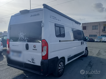 Vendo camper puro replica, collaudato 2 persone, il camper è stato allestito da personale specializzato del settore. Carrozzeria in perfette condizioni meccanica idem, il motore è stato rifatto a nuovo ( documentato), frizione nuova, nessun lavoro ma proprio nessun lavoro da fare. Cellula composta da una dinette che può ospitare 6 persone , si trasforma in 2 minuti in letto molto grande 140x190 circa, bagno con doccia separata e scalda acqua da 12 litri, 3 oblò di cui due turboventola, due finestre scorrevoli, un tendalino Thule omnistor di 350x 250 cm, serbatoio di carico acqua 120 litri , di scarico 100, wc elettrico truma, riscaldamento cinebasto da 5 kW con pescante carburante direttamente al serbatoio del ducato,telecamera posteriore di serie, impianto elettrico elettronico composto da batteria al litio da 360 ah DC dc Victor top di gamma regolatore solare victron 400 wp di pannelli solari, caricabatterie eza top di gamma, inverter da 6 kW che a regime diventano 3 onda pura,