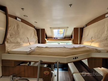Camper del 2015 su fiat Ducato 130 CV cilindrata 2300 cc. , km. 89500 (cinghia di distribuzione nuova - novembre 2024). 5 posti viaggio+ letto (letto alla francese in coda, letto basculante sopra la dinette, più eventuale letto trasformando la dinette).Camper lungo m. 6,70 ed equipaggiato con portabici, tendalino, pannello solare, turbovent, duo control (scambiatore bombole gas).