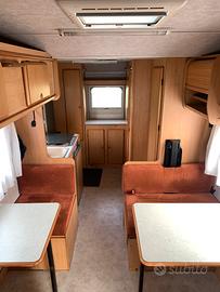 6 posti in viaggio e 5 + 1 posti letto. Stufa Trumatic a gas di serie, frigorifero Trivalente e cucina a 2 fuochi, doppio serbatoio acqua, doppia bombola GPL.