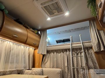 Vendo camper del 1999, in ottimo stato, per cambio tipologia. Motorizzato Mercedes Sprinter 5 cilindri in linea, 3000cc., 130.000 km, meccanica perfetta, tutto tagliandato (ultimo tagliando anche cambio olio del cambio e differenziale). Stufa Truma 6000, 3 serbatoi acque chiare (280 lt.), pannello solare, inverter, illuminazione interna totalmente a led, frigo grande, tappezzeria nuova completamente sfoderabile, boiler 10 lt., batteria 100 w per servizi, materasso nuovo in mansarda e ulteriore materasso da aggiungere al letto alla francese in coda.