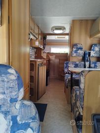 Vendo Camper Rimor Superbrig 677tc su meccanica Ford del 2001, ruote posteriori gemellate, sospensioni posteriori migliorate con sospensioni AL-KO pneumatiche regolabili in base al carico, 6 posti viaggio e 6 posti letto, letto matrimoniale in coda sempre pronto, climatizzatore il cellulare a 220volt, televisore 12v con braccio direzionabile, batteria motore e batteria servizi entrambe 100Ah con possibilità di scollegare batteria dei servizi nel periodo invernale, radio/stereo 2 din con RETROCAMERA, stufa canalizzata e boiler Truma a gas, frigorifero trivalente , tendalino Omnistor montato 5 anni fa, illuminazione interna ed esterna Led, bagno con comoda doccia separata, ampio garage con rampa comoda per caricare moto o scooter, doppio serbatoio acque chiare, doppio serbatoio acque scure, pannello fotovoltaico per batteria servizi, computer di bordo dal quale è possibile monitorare lo stato di batteria,serbatoi ed eventuale collegamento alla rete esterna. Wc con cassetta estraibile, scaletta esterna per accedere al tetto.