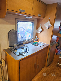 * Anno 2009 * Ford Transit 2.4 / 140 cv trazione posteriore e ruote gemellate * 59500 Km * EURO 4 * 6 marce * ultimo tagliando a 58.000 km (aprile 2025) -- OPTIONAL ED ACCESSORI: * Raffrescatore VIESA (nuovo appena installato) * Antifurto (con scheda SIM) * serrature meccaniche di sicurezza anti intrusione su porta e gavoni * Doppio Air Bag * Comandi Al Volante * Cruise Control * Aria condizionata posti guida * Inverter * Vetri elettrici * Specchietti elettrici * Radio cd * Oscuranti e zanzariere su tutte le finestre * Frigorifero trivalente * Riscaldamento TRUMA COMBI * Pannello solare * Portabici (4 posti) * Antenna tv * TV Digitale terrestre 12V * Box doccia separato * Stacca batterie * Doppia cassetta di scarico acque nere * Luce esterna * Tendalino esterno * Gavone variabile (rinunciando a 1 letto) * Lunghezza: 7,365 m * Larghezza: 2,400 m * Posti viaggio: 6 * Posti letto: 6+1 Controllo siliconature e infiltrazioni effettuato 6 mesi fa.